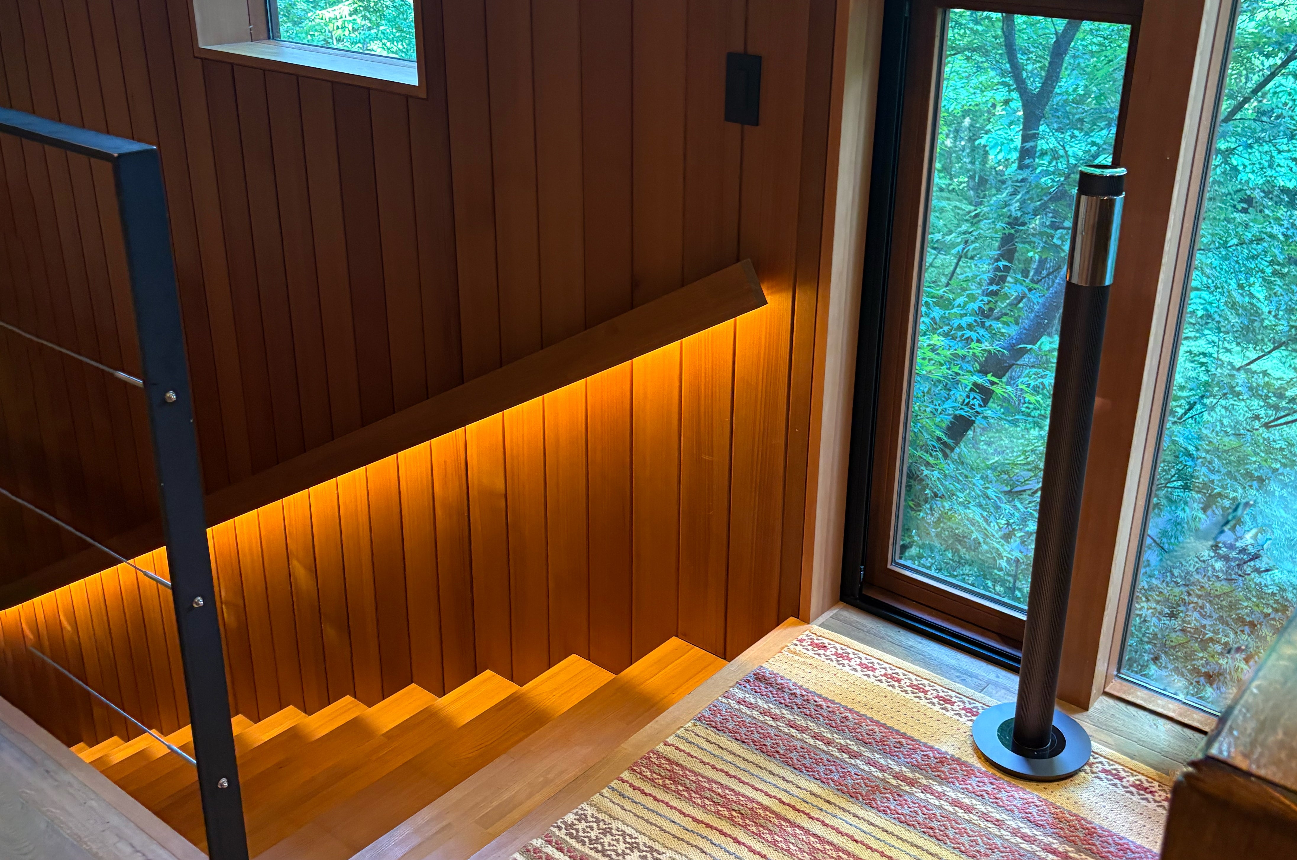 入口と奥での香りの体感差、配線の露出、景観との調和などをご紹介しています。