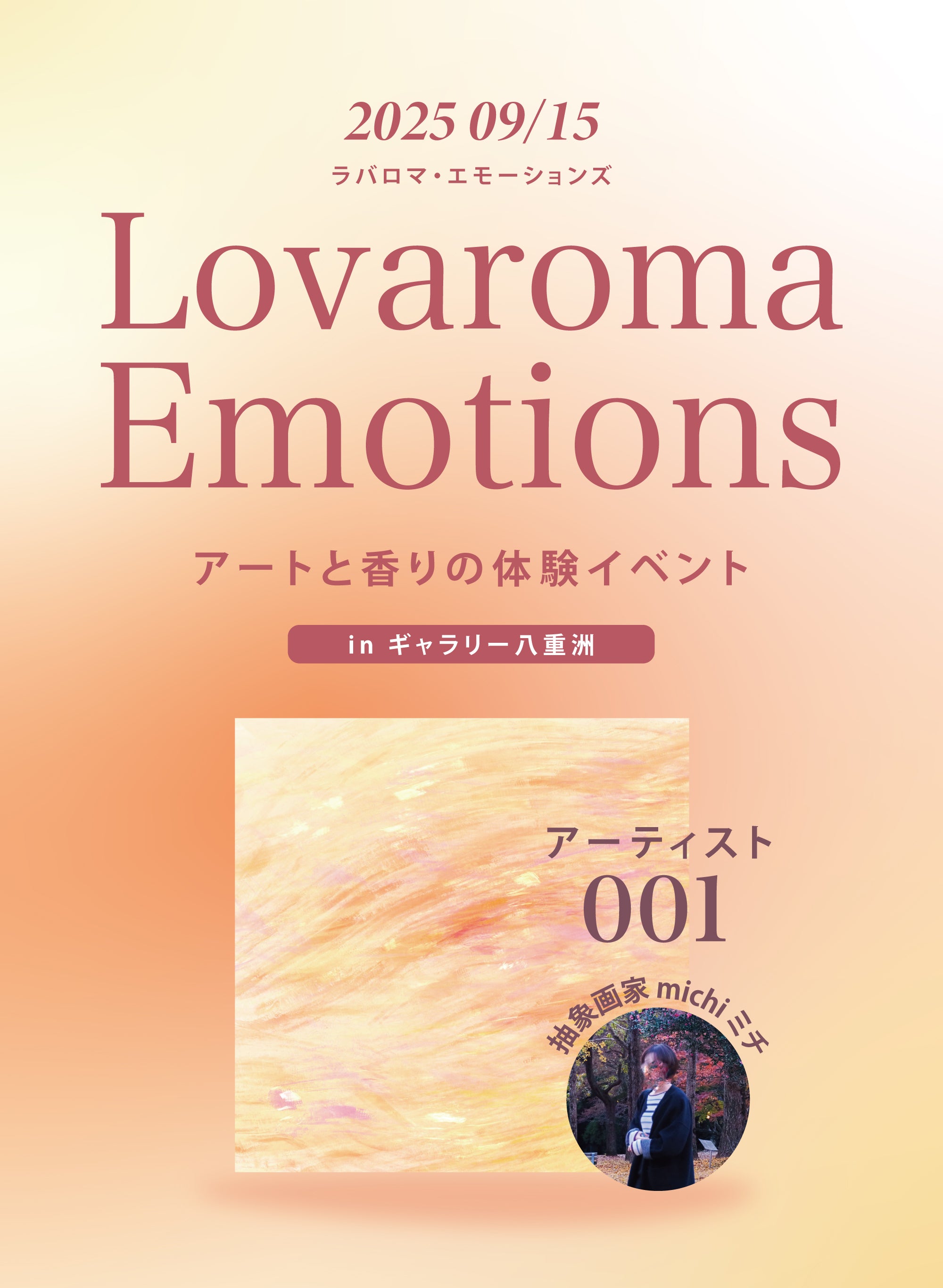 Lovaroma Emotions(ラバロマ・エモーションズ) は、アーティストの作品に込められた想いを「香り」で表現し、アートを感情レベルで理解・体感いただける特別なプロジェクトです。